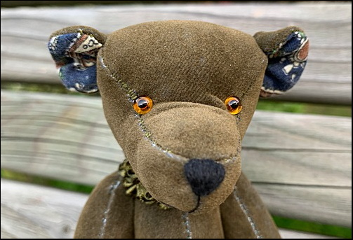 Gregory is made of suedette with cotton inserts on his hind paws and inside ears, and filled with polyfill and fine woodwool.